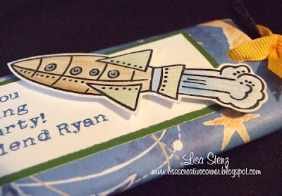 In the midst of getting ready to leave for CTMH’s Leadership Conference on Thursday, I quickly whipped up some simple party favors for my son to hand out at his birthday party tomorrow. (Maybe next year the kids will get a little more than just a candy bar! LOL!) Ryan loved the candy bar sliders that I made with my club last month, so we decided to make some for his friends. I used the Stardust paper packet and the Reach for the Stars stamp set. Ry had so much fun helping me color with my Watercolor Pencils and Blending Pen that I just may order him a set of his own. (They are way less messy than watercolor paints—perfect for a 6 year old. LOL!)
