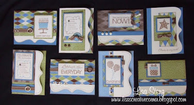 To celebrate National Stamping Month in September, Close to my Heart is giving you 3 ways to get a FREE Everyday Celebration card kit for making 16 beautiful cards or, in my case, 8 cards and a layout! (See photos below.) Look at all of the goodies in the kit! The stamp set alone is wonderful, but when you throw in all of the other goodies, you have a fabulous kit to make a ton of projects!