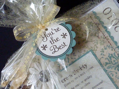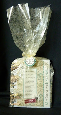 Each of my gals will be getting (if they haven’t already) one of these journals I made using CTMH’s My Creations Journals. They are so much fun because they have a little pocket on the front so you can slide whatever you like in it. I used some of my favorite papers and added the definition of “Creative.” I am hoping they will use them for their sketches, notes, and creative ideas. I also included a matching pen.
