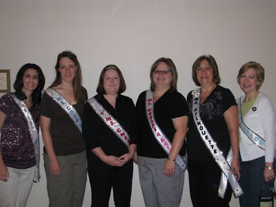 Each of our team members chose a different paper packet and we made sashes to show the pack we “represented.” There are only 6 of us in this photo, but there were 12 total team members who attended. (I was Ms. Topstitch.) We each had a glittery tiara as well. It was so funny. We kept getting asked how we “earned” our sashes.