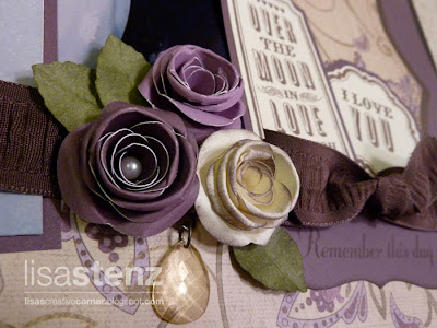from the beautiful Heirloom Assortment. I also used some ribbon from the Cocoa Ribbon Rounds. The faux stitching around the edges was stamped using the dashed line in the Circle Around