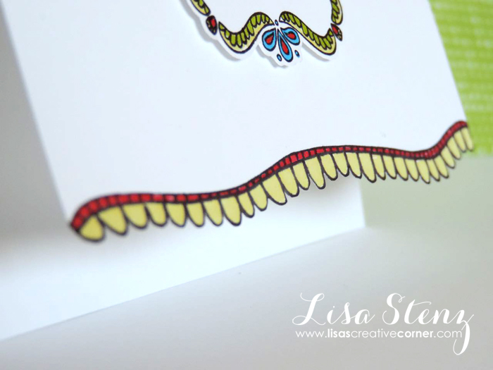 I then stamped the bottom of the card base with the cute scallop border and colored it in with the