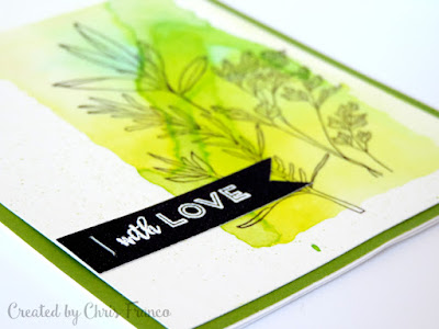 The “with love” sentiment, also from the Good Thymes! stamp set, was embossed with white embossing powder on the black cardstock banner shape, and then stapled to the card with the CTMH Mini Stapler. Don’t you just love this card? It makes me happy just looking at it! Thank you so much Chris for taking the time to make and send us such a beautiful piece of art and for the sweet words of encouragement inside. xoxo