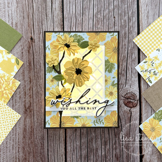 Here is another Light Up card that I created similar to the one I shared here. This one uses the beautiful Floral Delight DSP, Delightful Wishes Stamp & Die Bundle, Floral & Gingham Vellum, and Linked Together Dies.