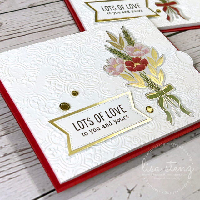 The great thing about this type of card is its versatility. You can use nearly any die for the opening and change up your stamps, sentiments, or die-cut Designer Series Paper pieces to create endless designs. I share even more variations at the end of my class!
