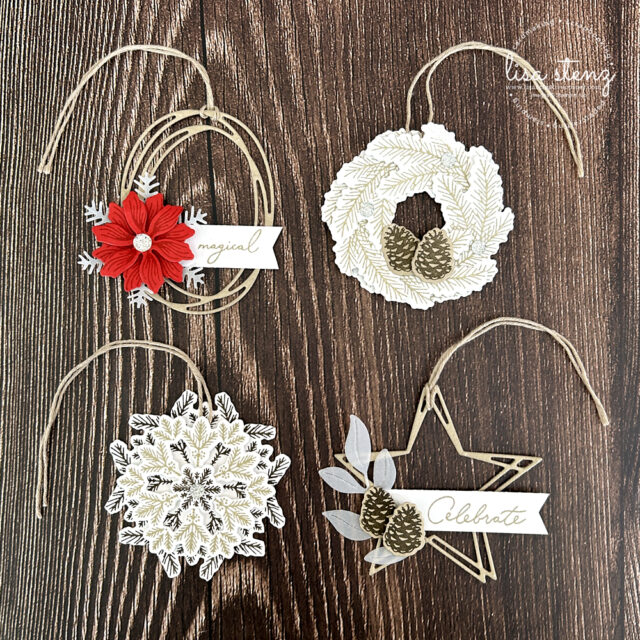 These (4) delicate gift tags can be used as ornaments or attached to a gift.