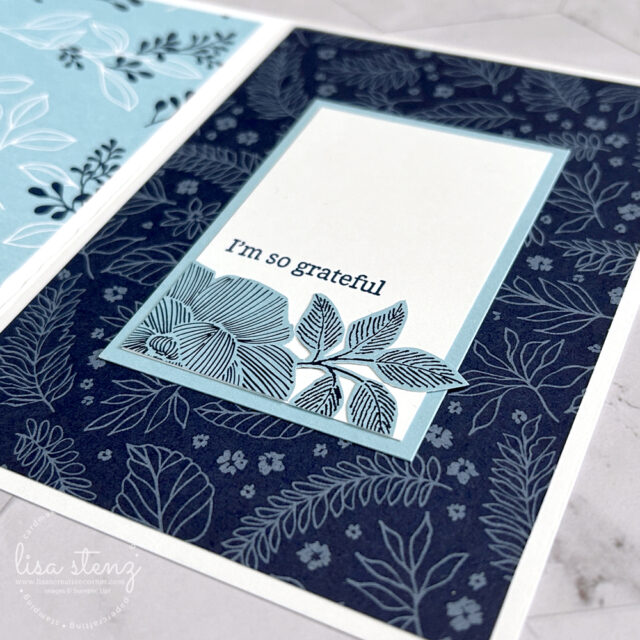 - Add a die-cut flower to the inside and stamp “I’m so grateful” from the Banner Sayings stamp set.