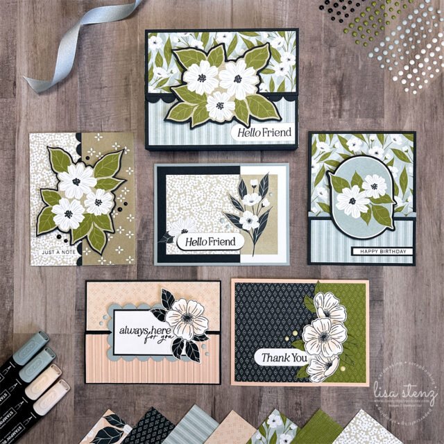 Each of the 5 hinge cards uses different elements of the Lovely Blossoms Suite.
