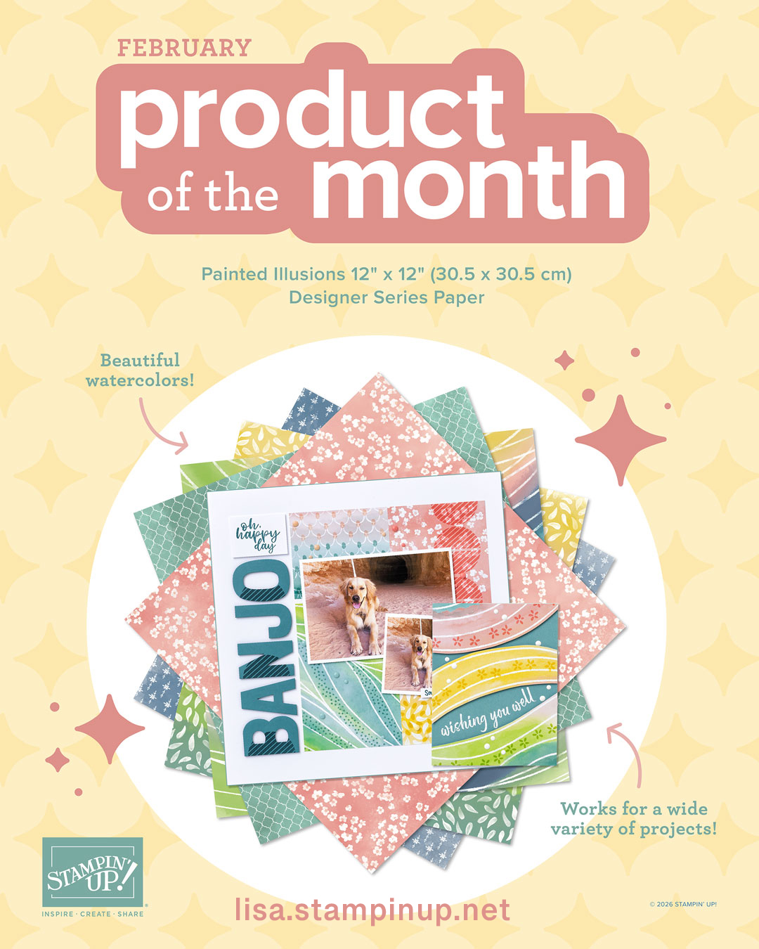 The Painted Illusions 12″ x 12″ Designer Series Paper is the exclusive Product of the Month for February 2026! Only available until stocks run out—don’t wait to get yours!