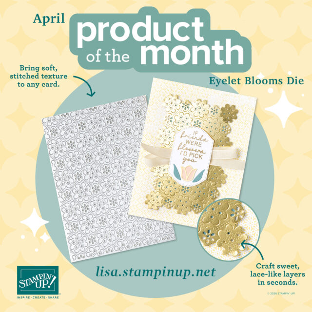 The April Product of the Month is officially available. Give your card fronts and crafts a dainty touch with the 4⅜” x 6″ Eyelet Blooms Die. Create delicate backgrounds with a hand-stitched look or layer pieces for a classic finish that works for any occasion. It’s eyelet magic for every card.