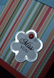 I went to Big Lots yesterday and found a ton of great stuff that I really didn’t need, but had to buy. One of which was a 6×6 Making Memories pad of patterned paper. This card isn’t anything special, but I wanted to whip something up as soon as I came home and this is what I came up with. I used some Cranberry cardstock for the base and layered it with two sheets from my new “MM Cheeky Collection – Emery” paper. I added a little stitching around the border. (I really need more practice with my sewing machine!) I added some blue grosgrain ribbon and a CTMH flower shaped metal framed tag with a Cranberry brad to finish it off. (The Miss You sentiment came from Papertrey’s Mixed Messages set. A set that I really need to use more often!) The card is pretty plain, but I just love the paper. I can’t wait to create more with it!