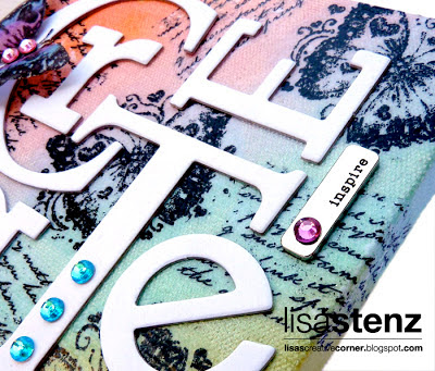 I finished it off by adding the fun “inspire” Word Accent (available August 1st) and some of our new Pink, Purple, and Teal Bling Jewels (also available August 1st) to give my project a little sparkle.